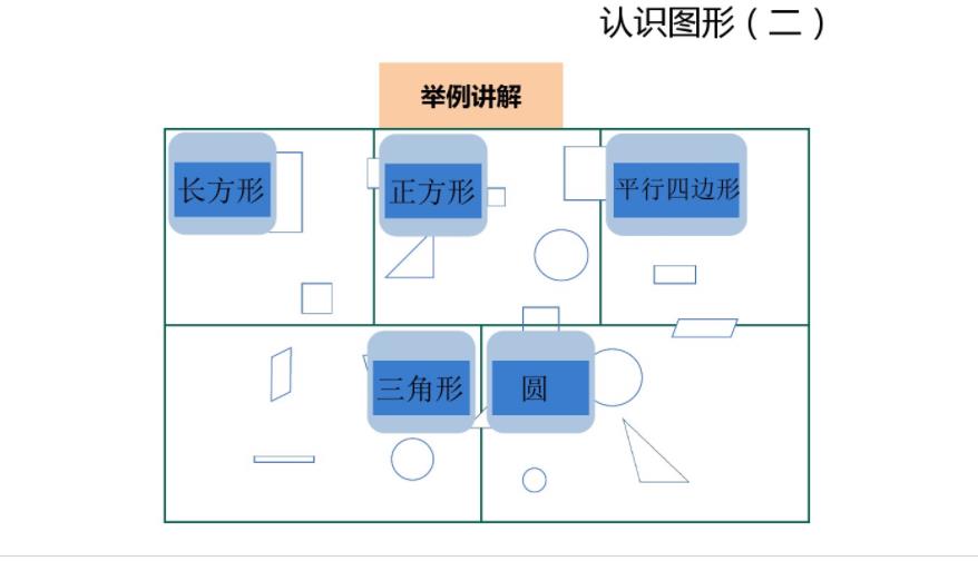 3.认识长方形、正方形、圆形和三角形的实物与图形。