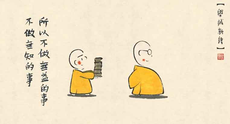 有一天贤二很卖力地把庙里的砖头从东边挪到了西边,然后满头大汗地对师父说,师父,您说过做事情可以开智慧,我发心搬砖从东边挪到了西边。本想得到师父的肯定,可师父却说,这些砖是贤一刚从西边搬到东边的。糊里糊涂的贤二,做事的发心是好,但是,却因为智慧不足,做了无用功,他自己也很苦恼。做事虽好,但“不做无益的事,不做无知的事”也很重要。